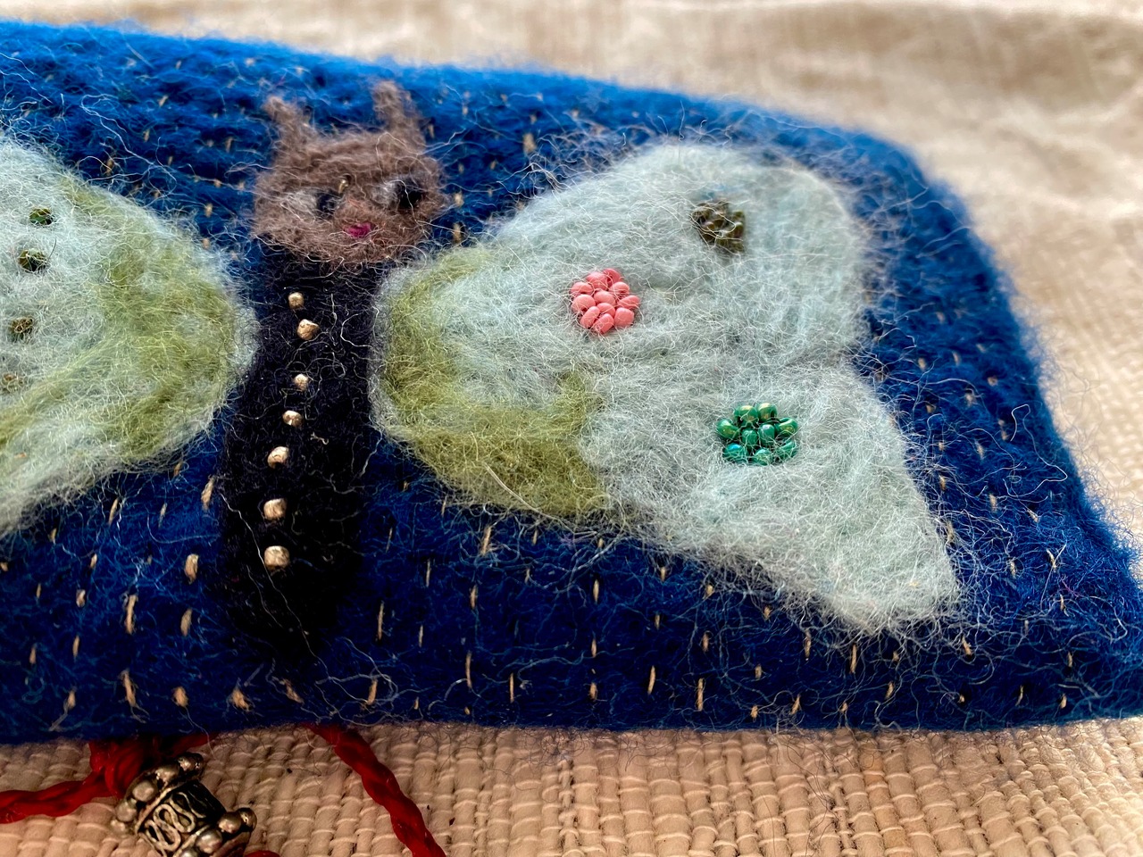 水色の羽と銀色の模様が自慢げな蝶々くん。