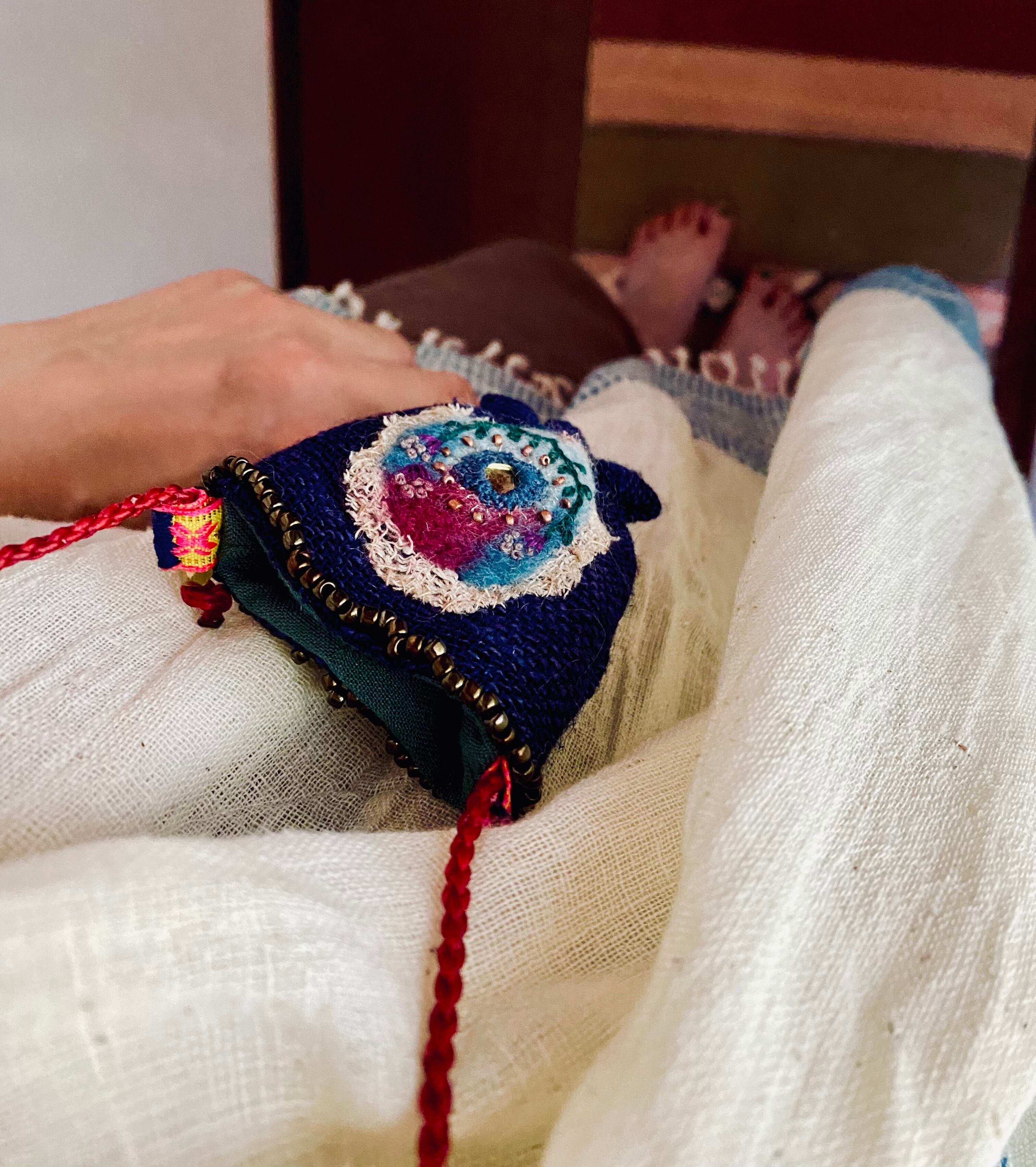 素材:ヘンプ、麻、コットン、蝋引き糸、羊毛、ガラスビーズ、ウッドビーズ