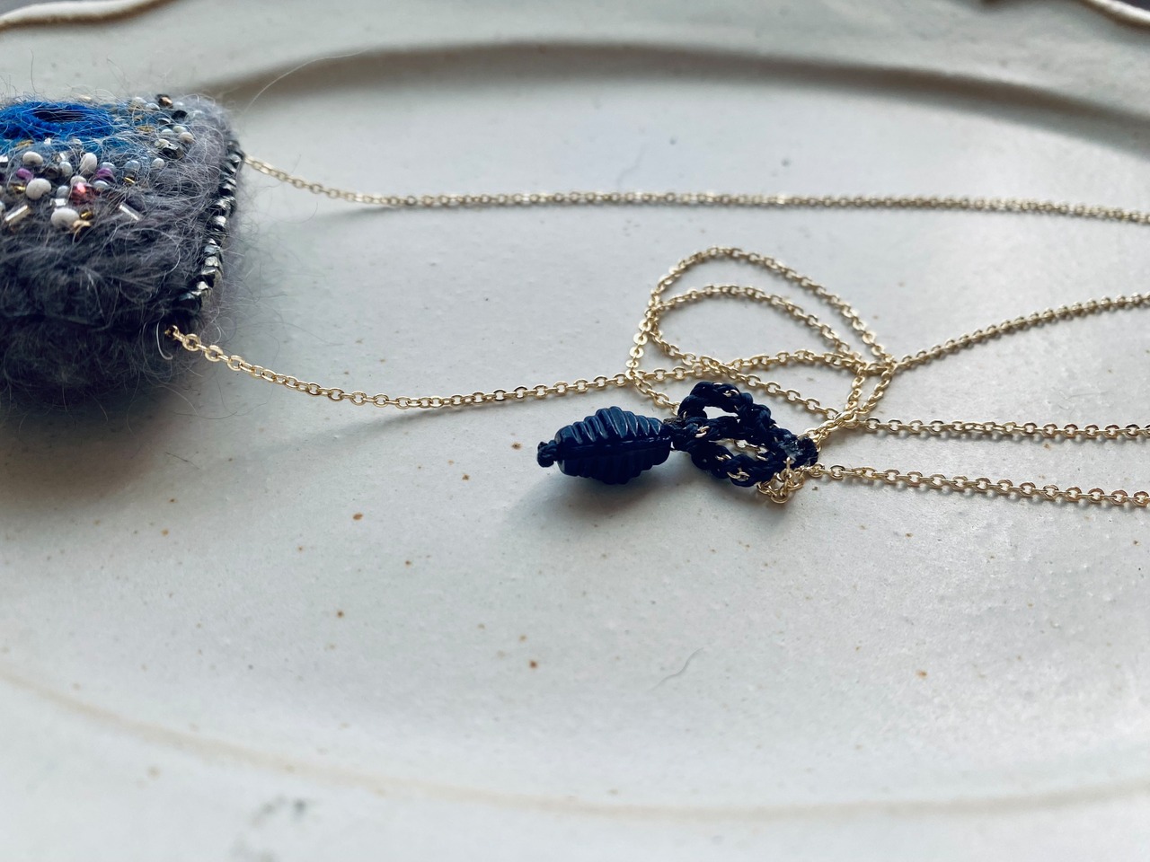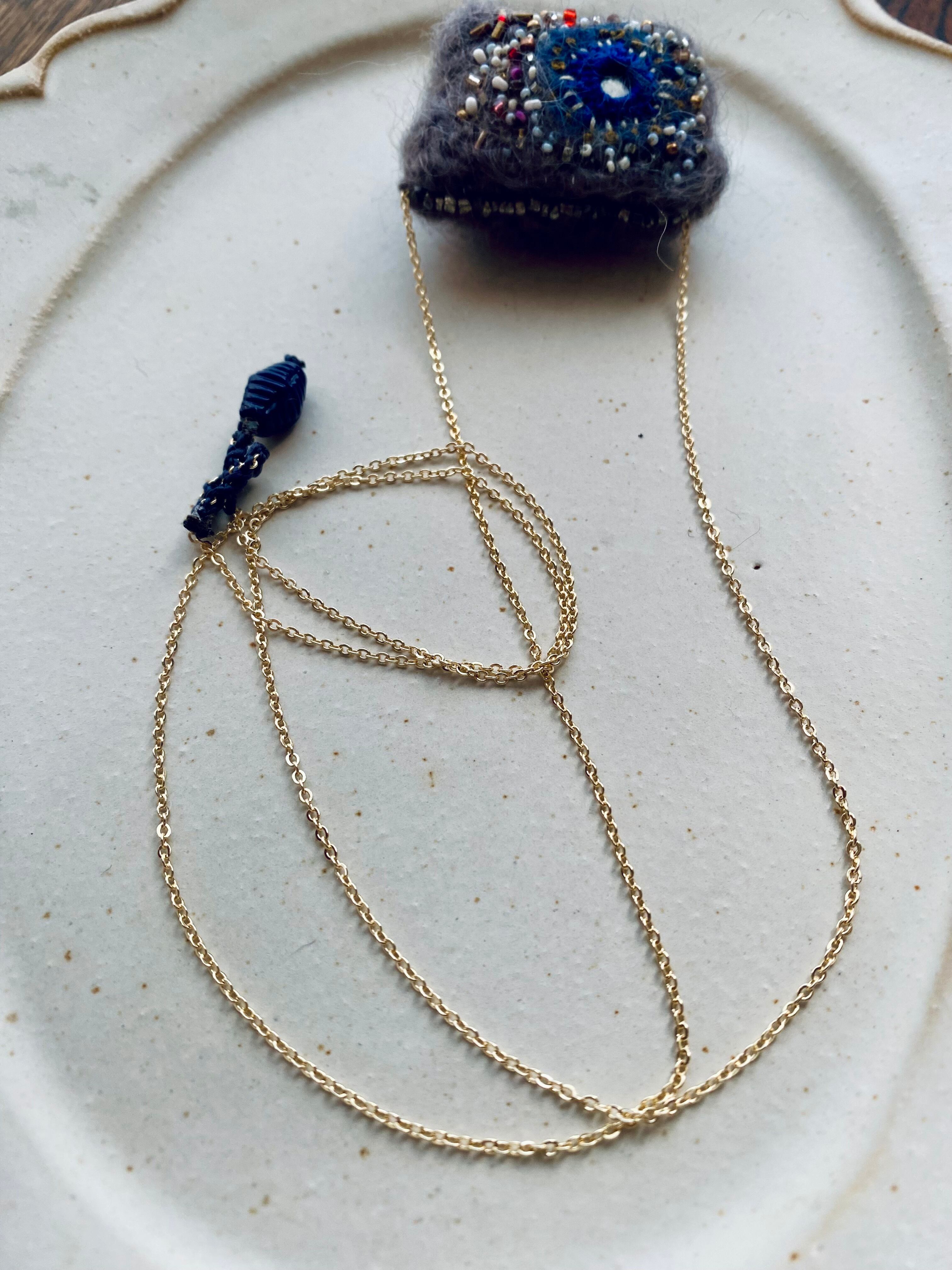シックな濃紺のヴィンテージビーズを使った