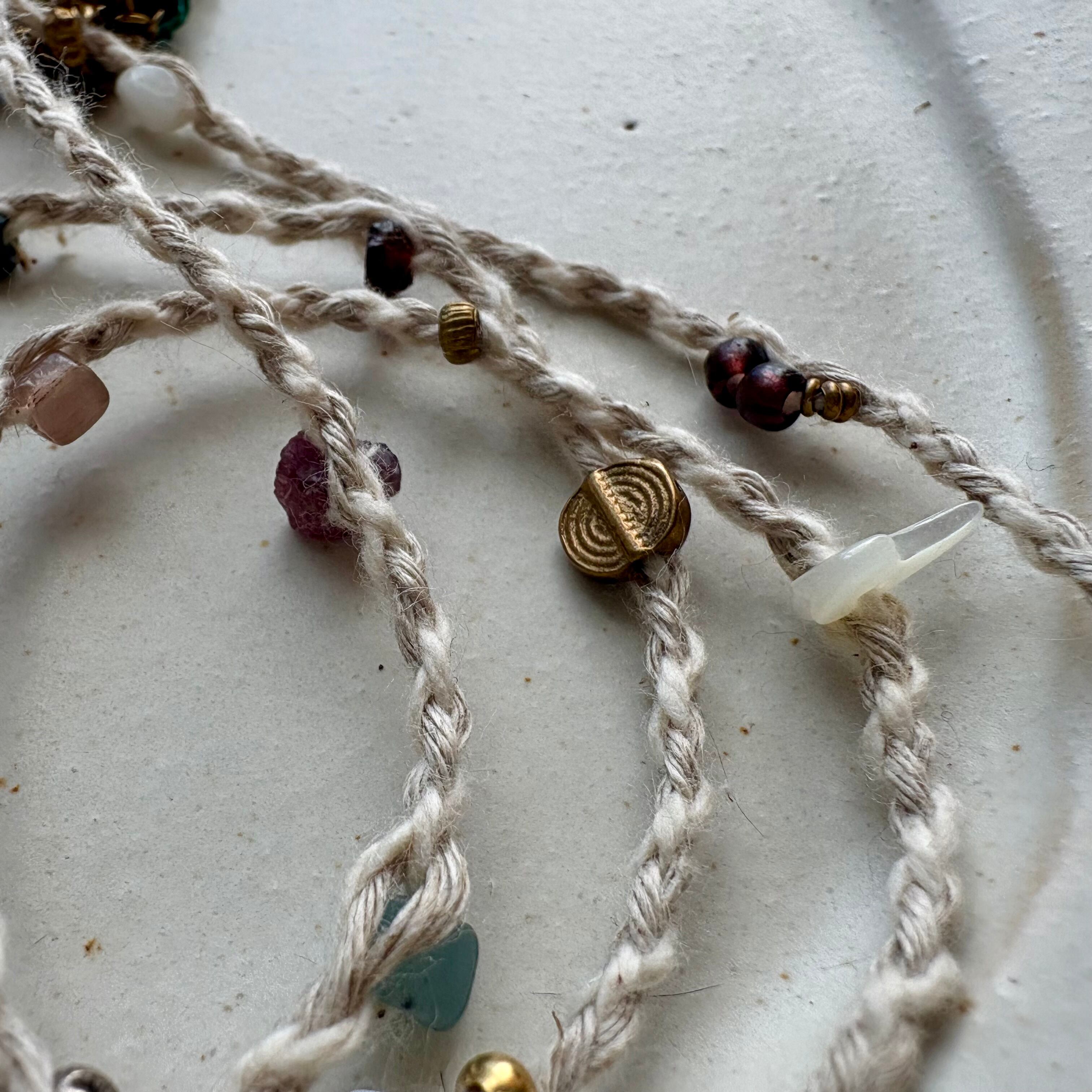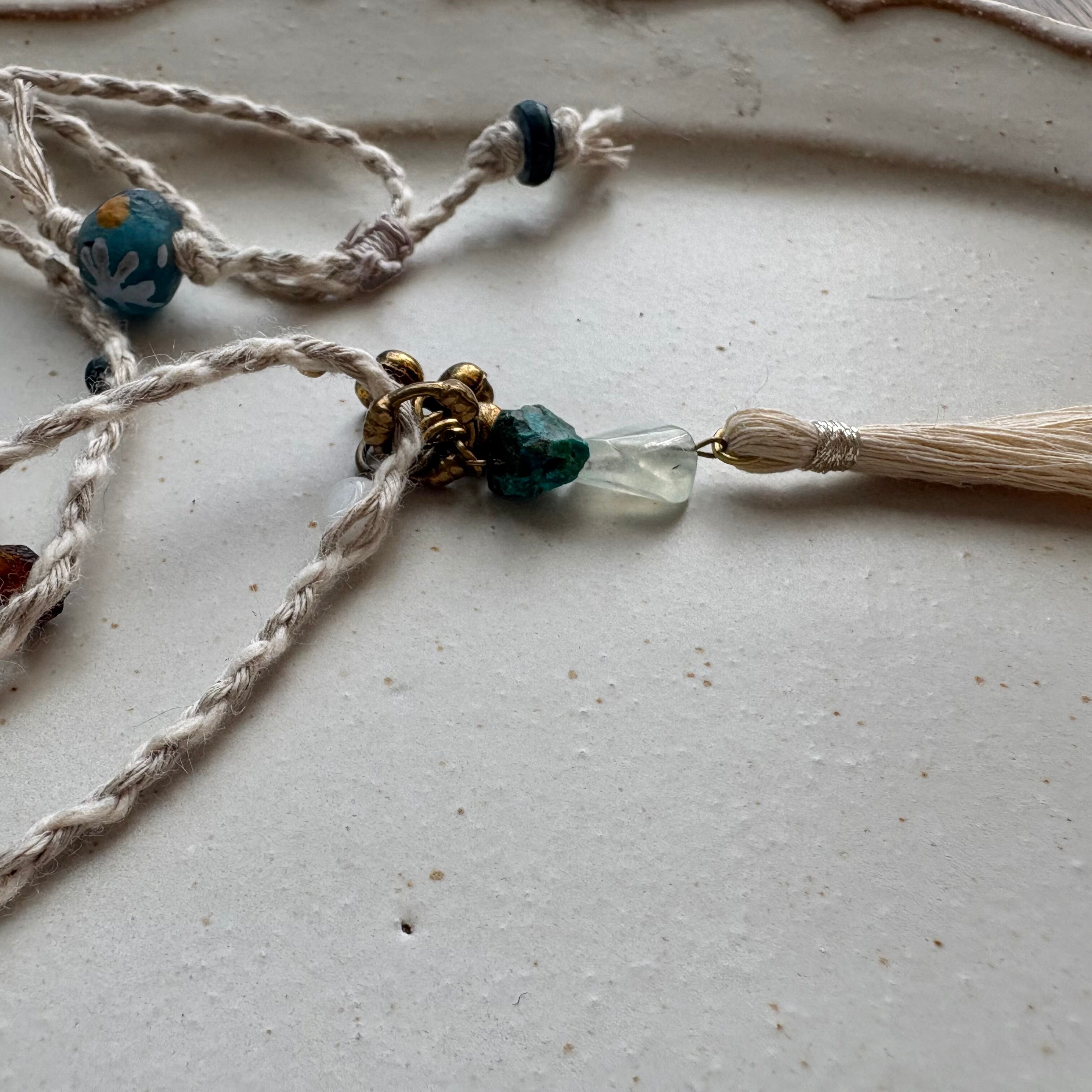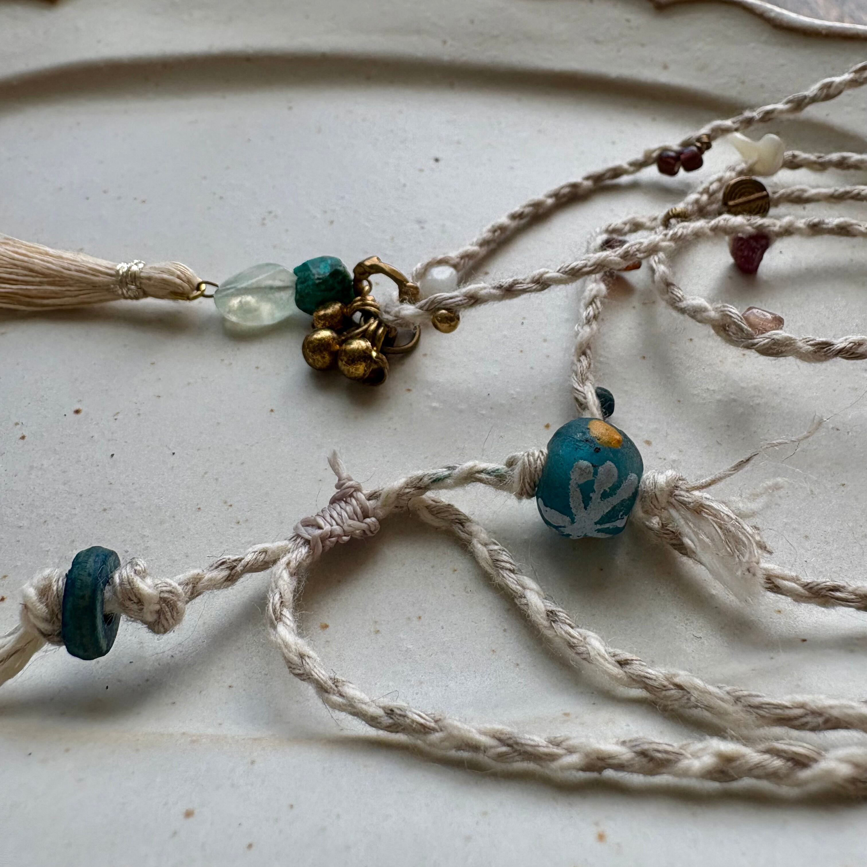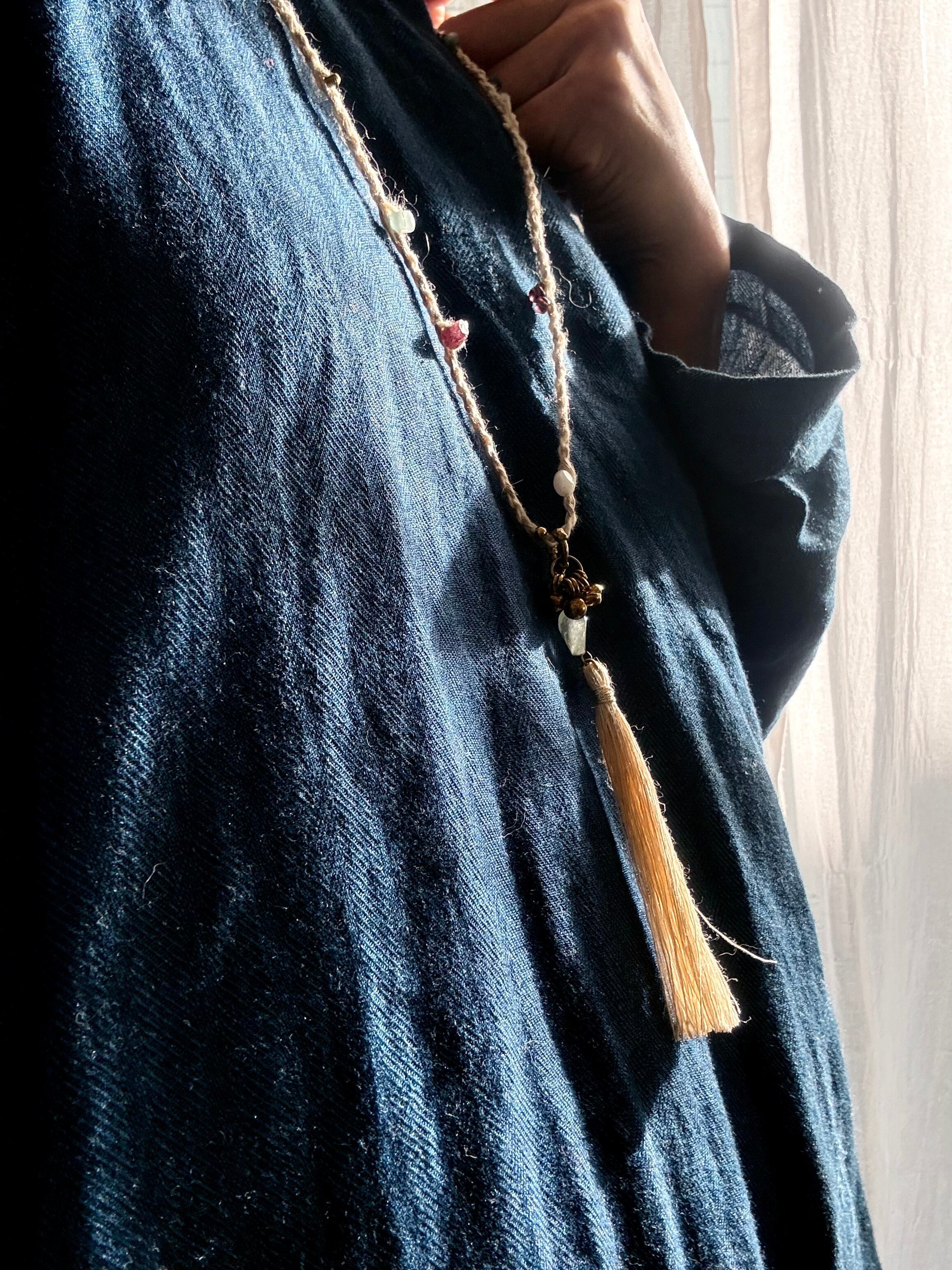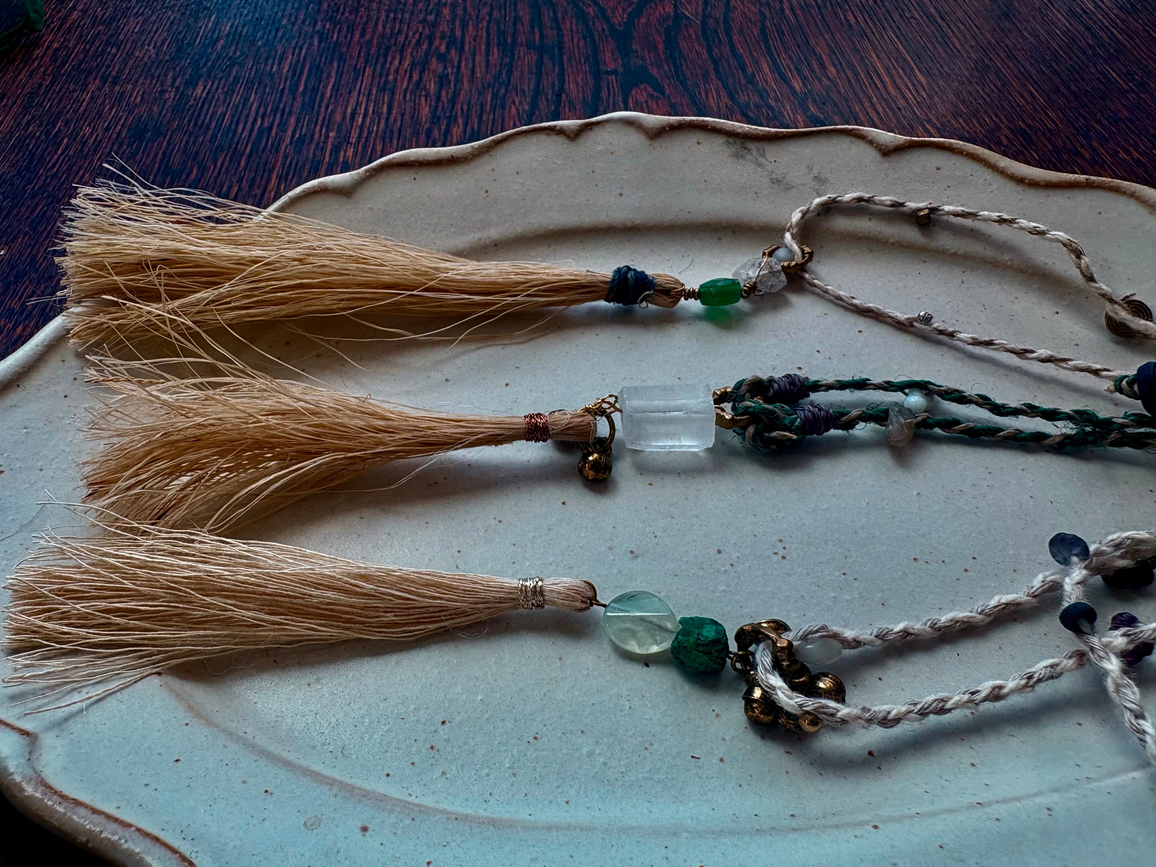 精麻のタッセルをつなげたペンダント