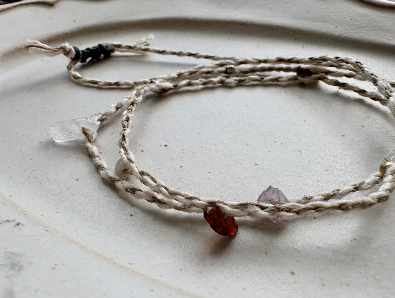編み込んだネックレス紐部分は