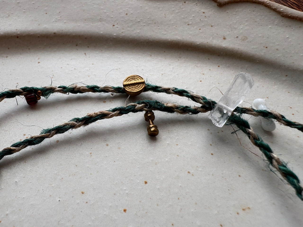 編み込んだネックレス紐部分は、