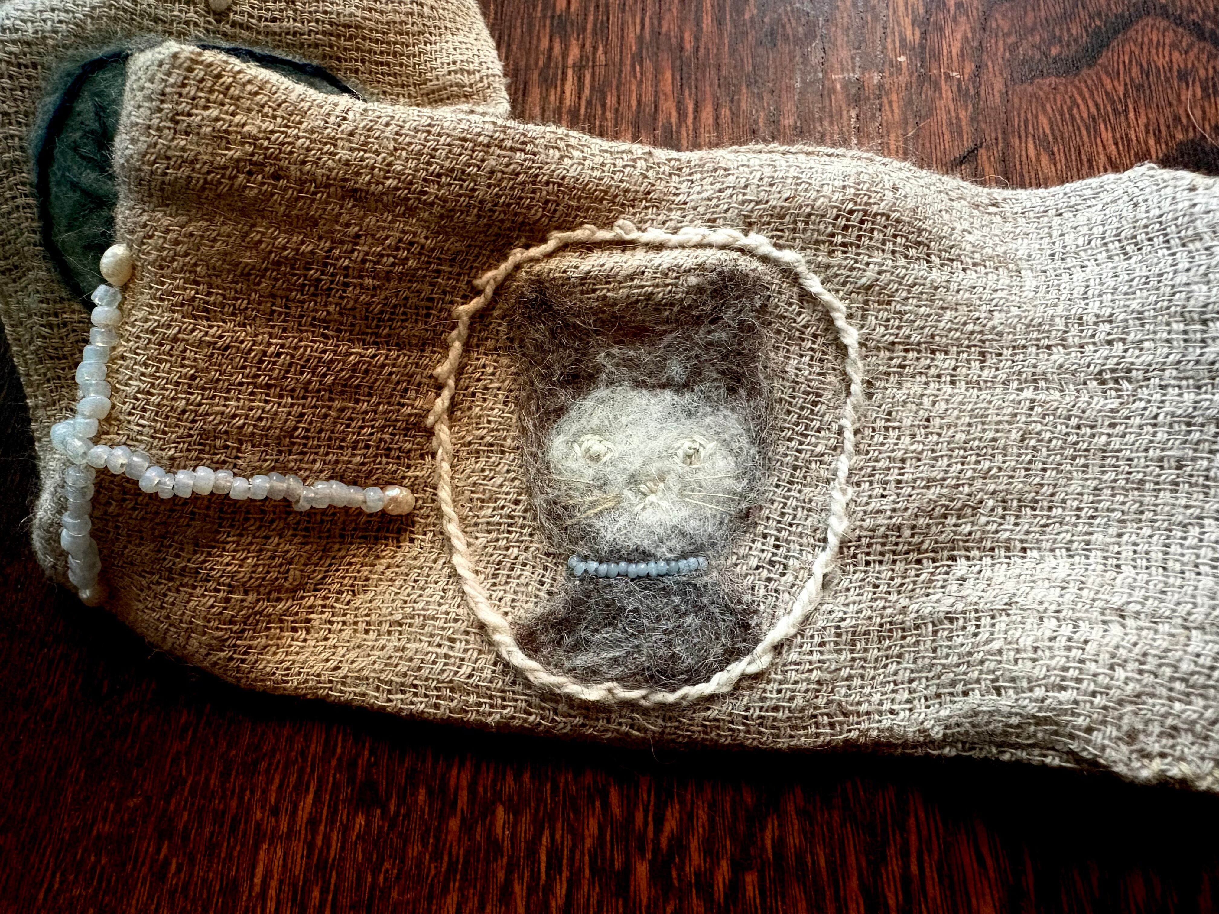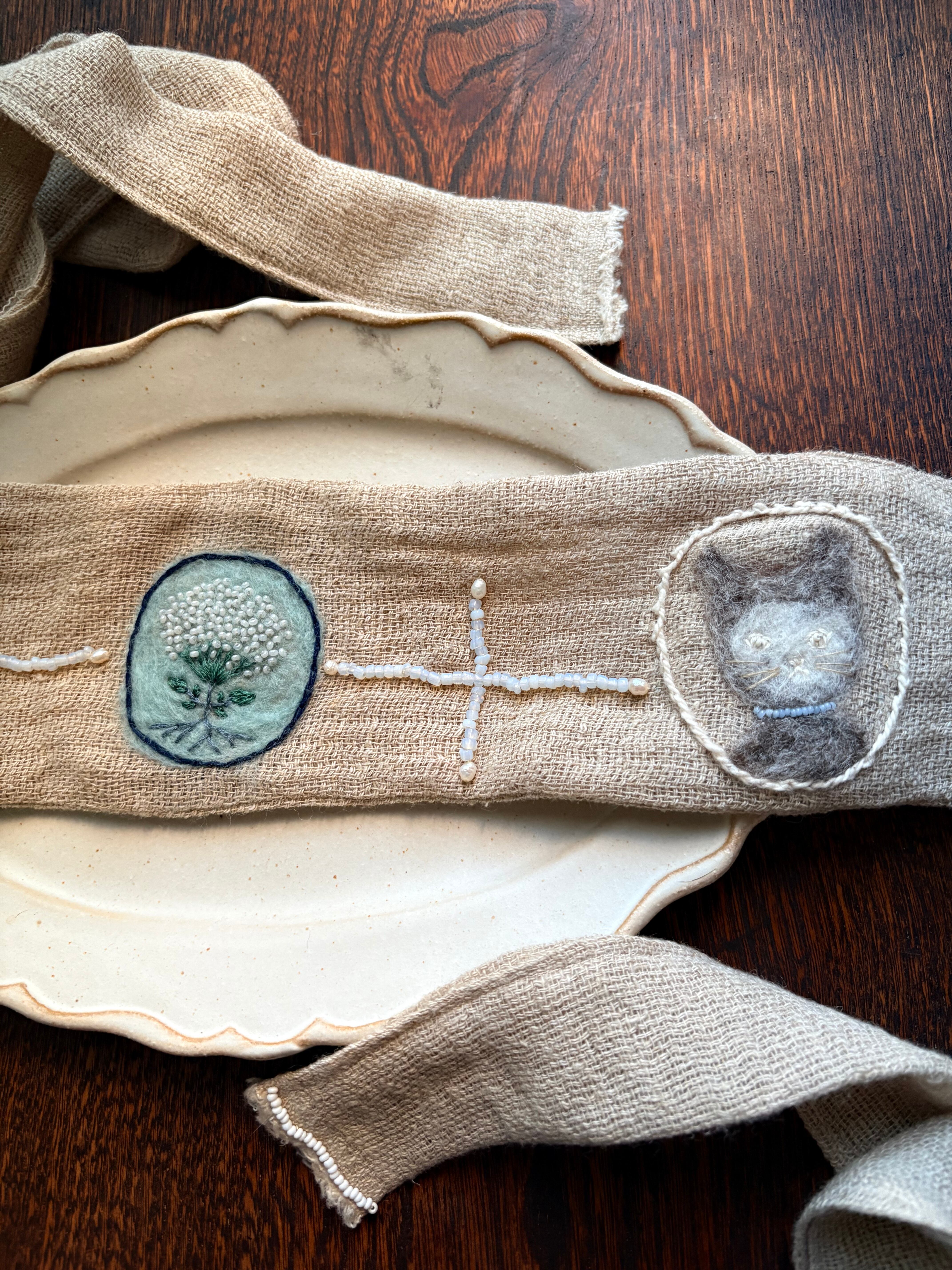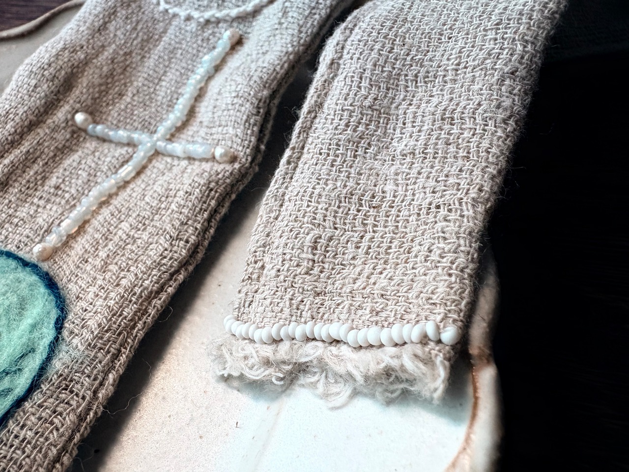 コットン、ウール、ガラスビーズ、淡水パール