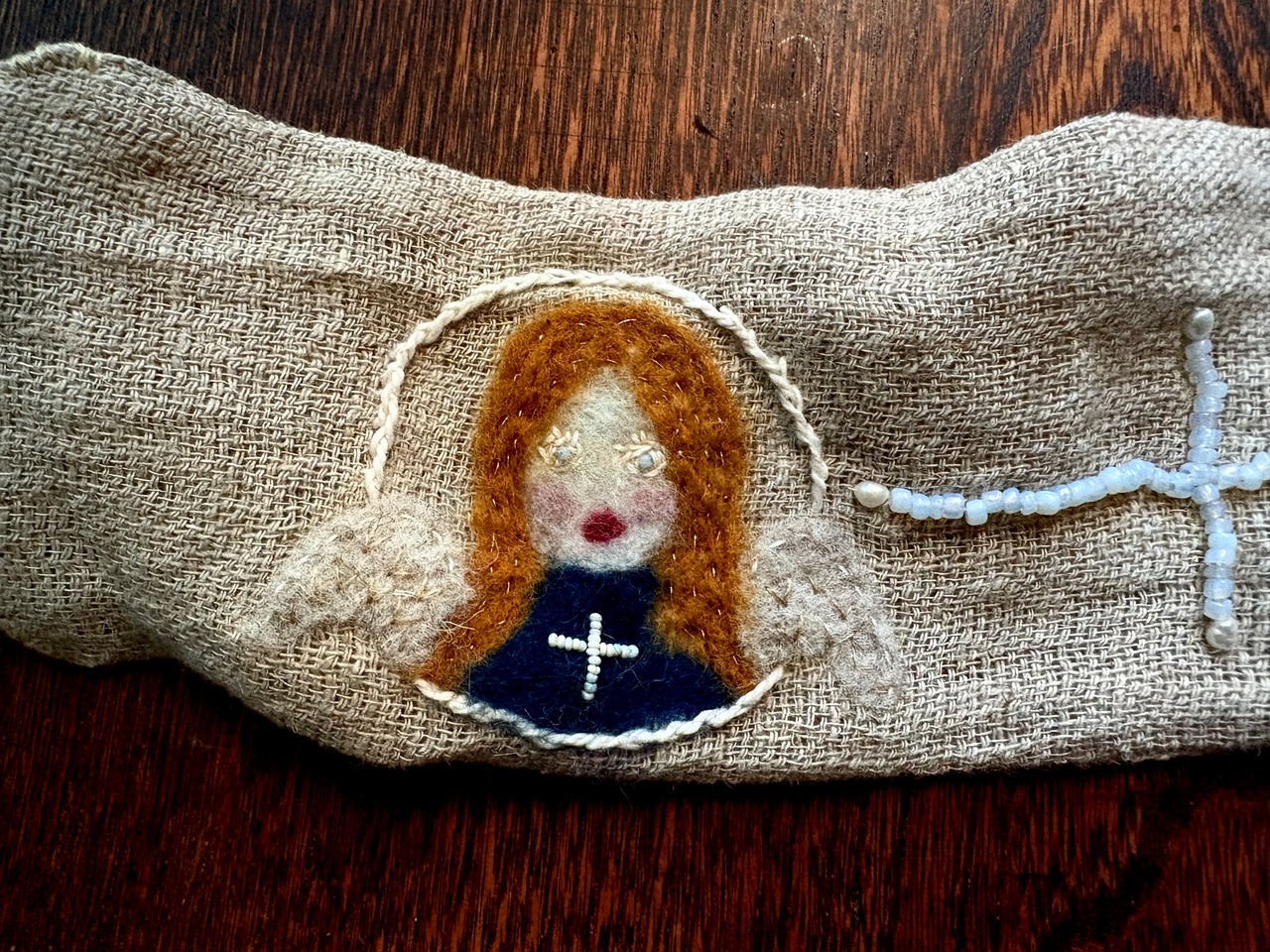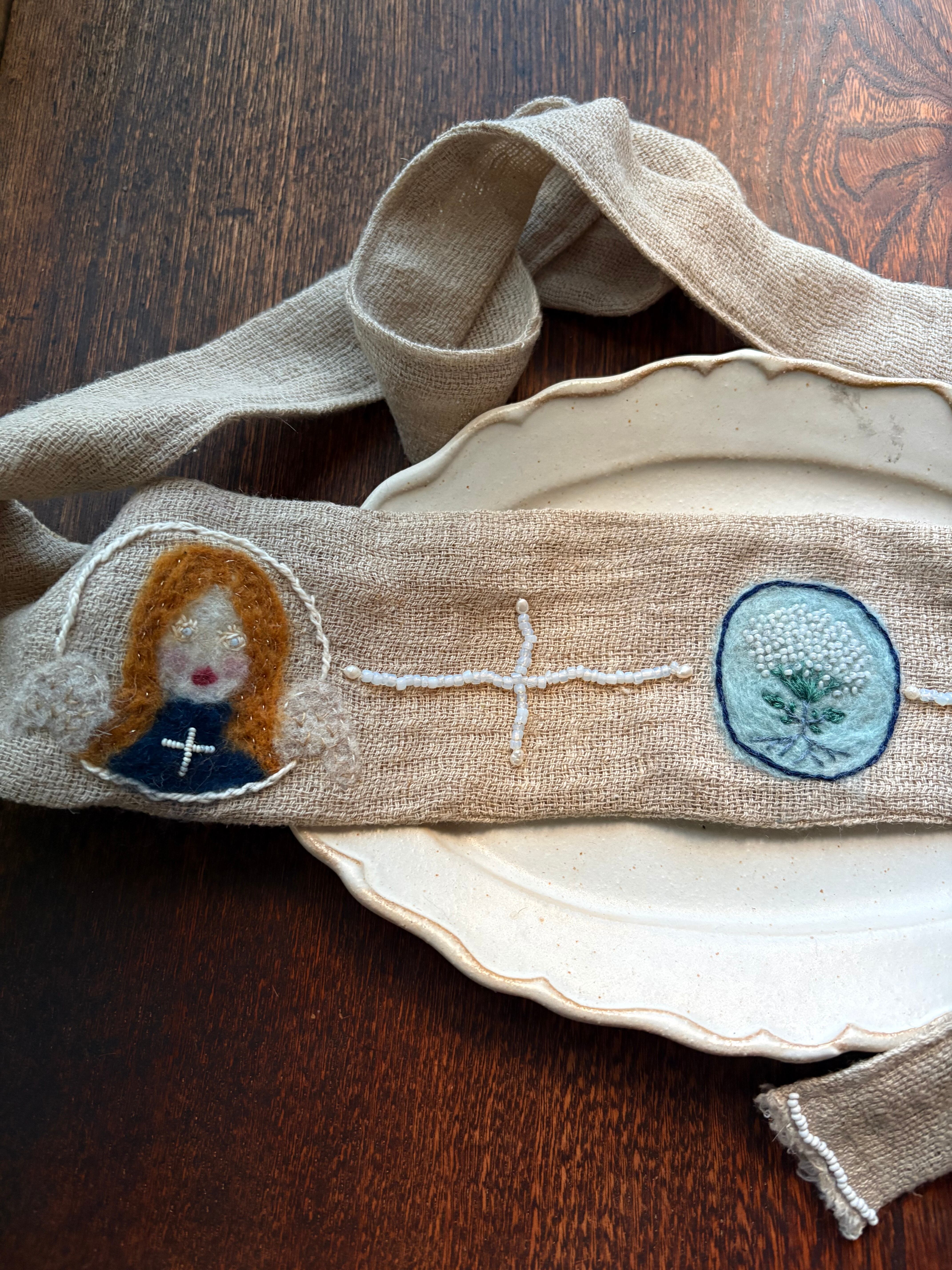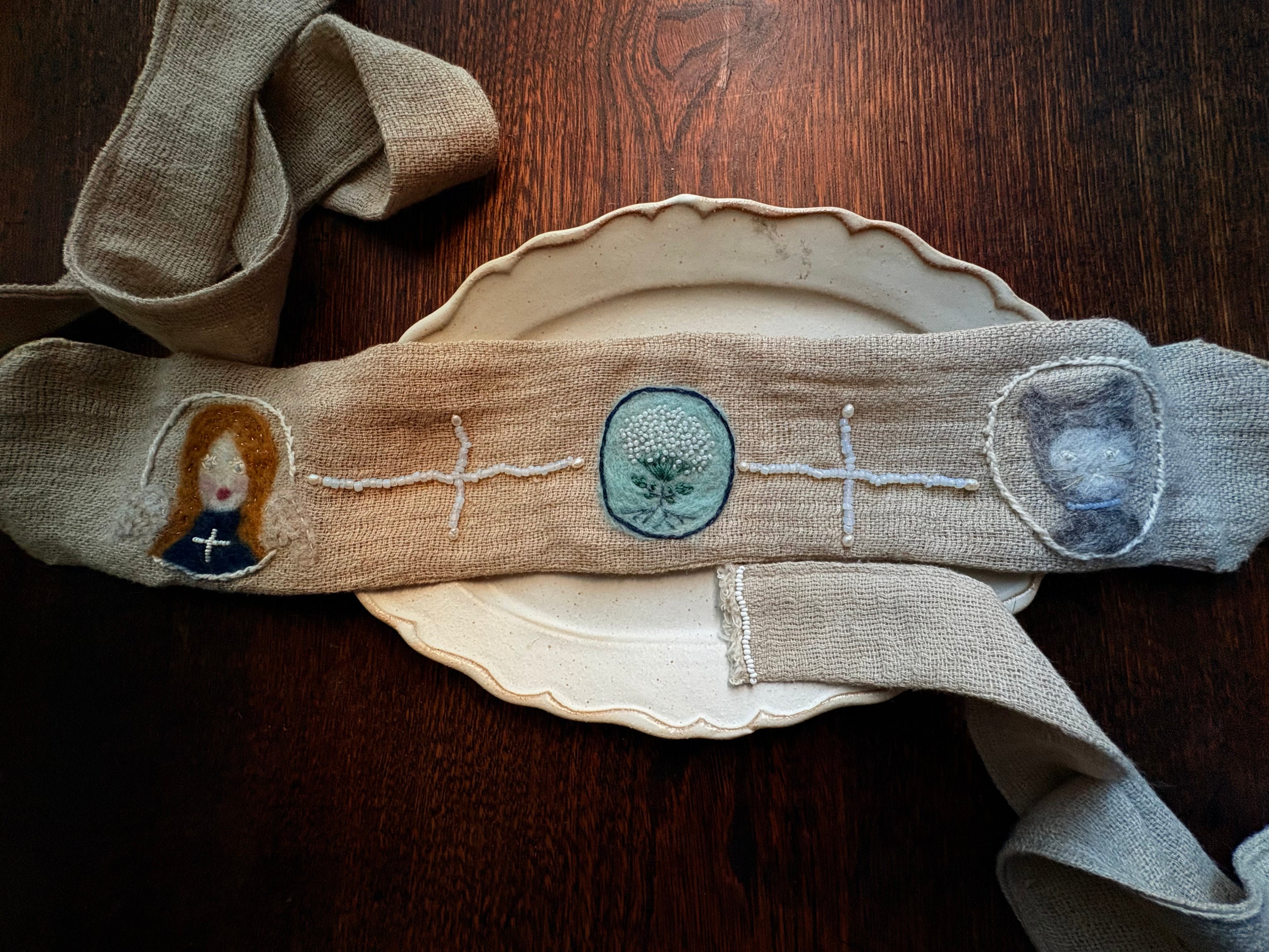 コットン、ウール、ガラスビーズ、淡水パール