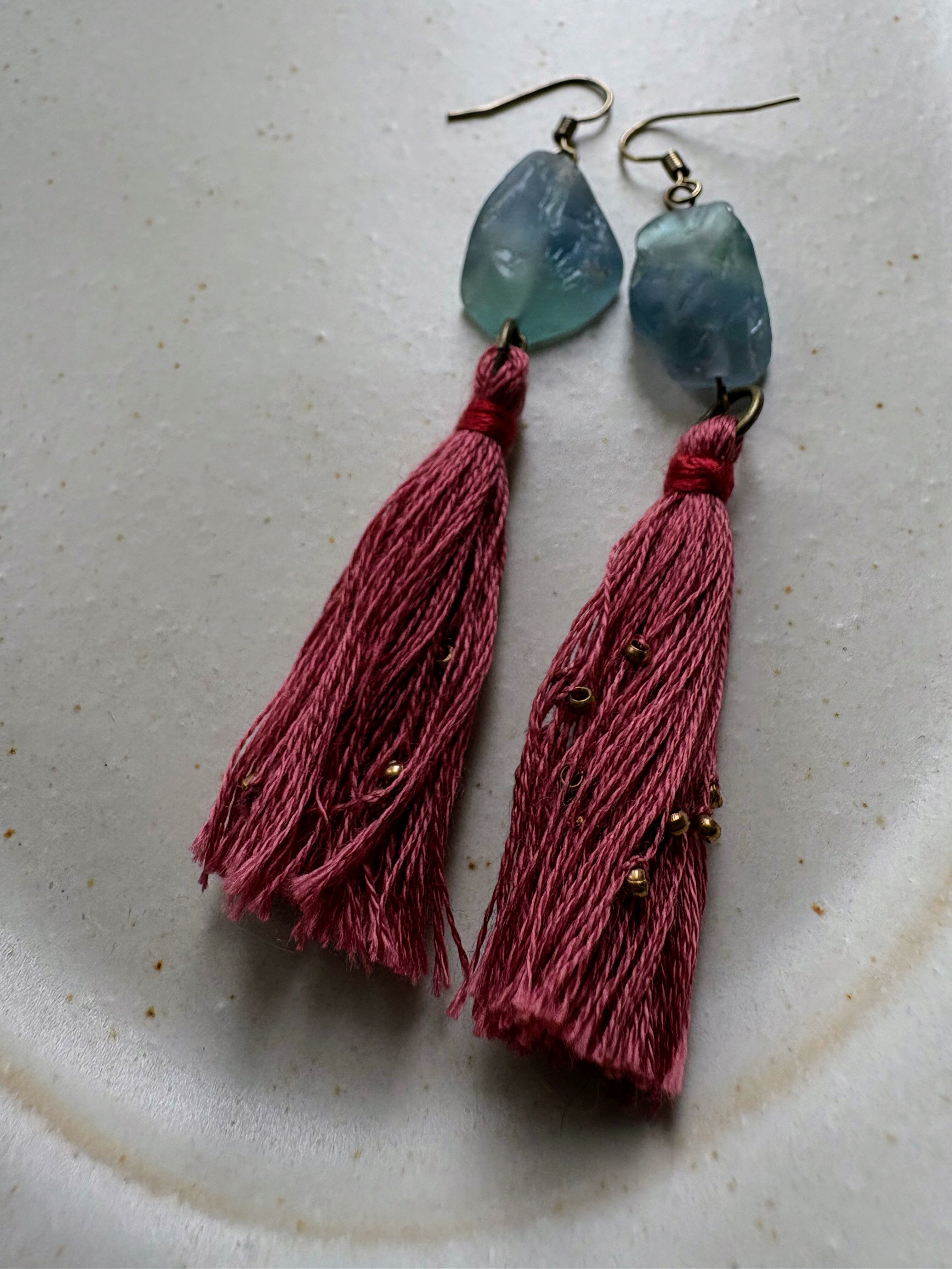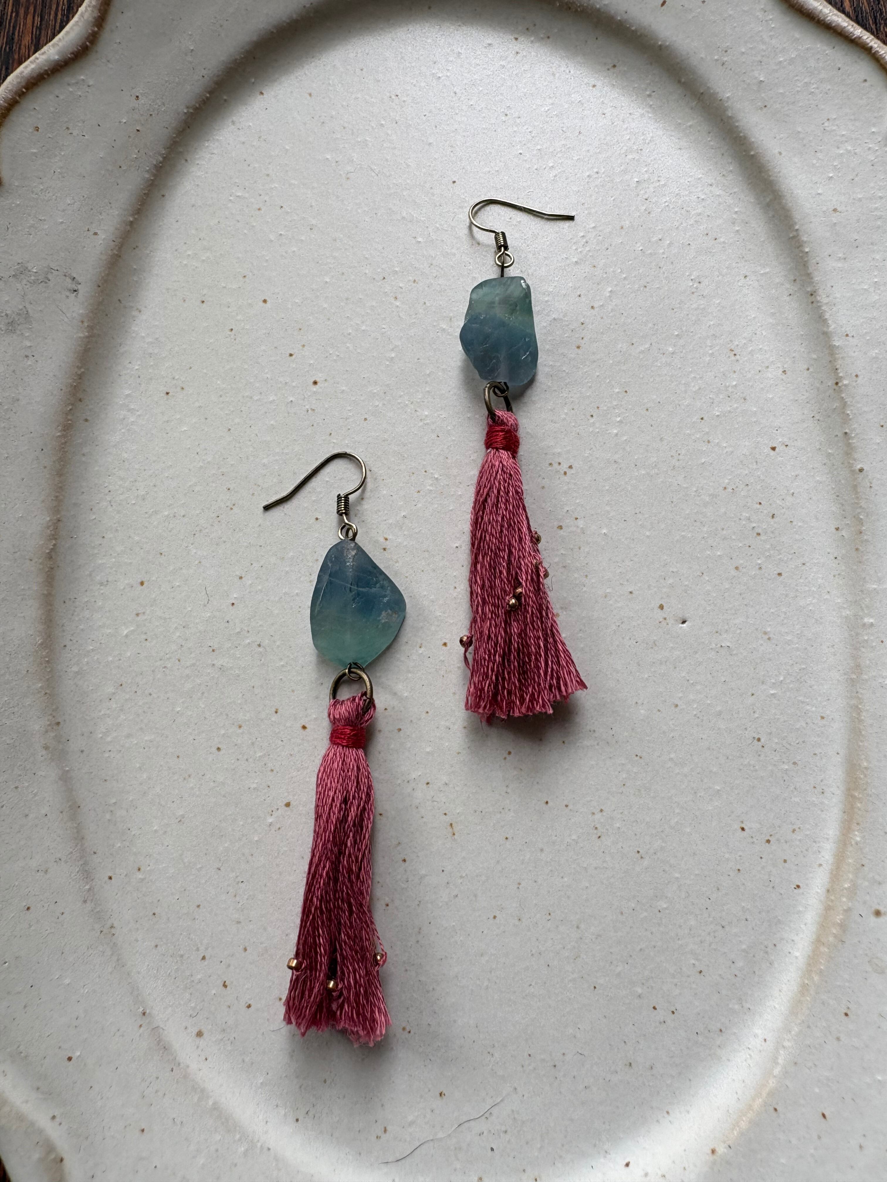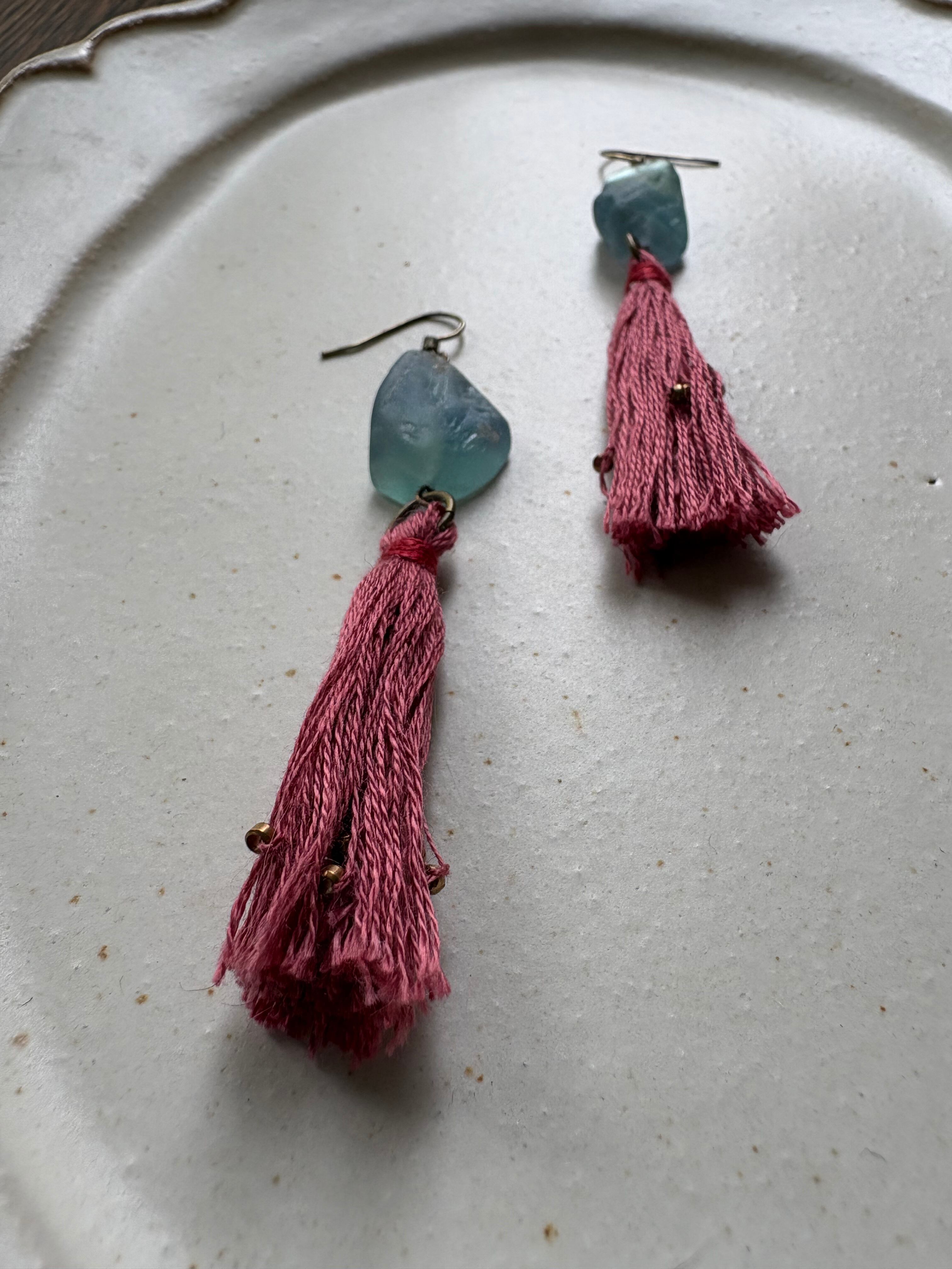 蛍石と朝焼け色タッセルのピアス