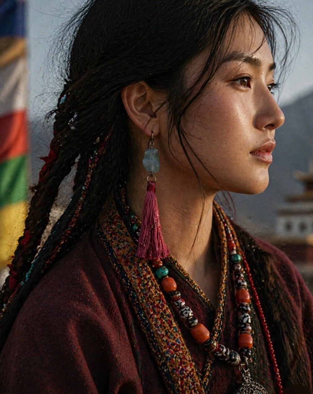 目の覚めるような朝焼け色の刺繍糸タッセル。