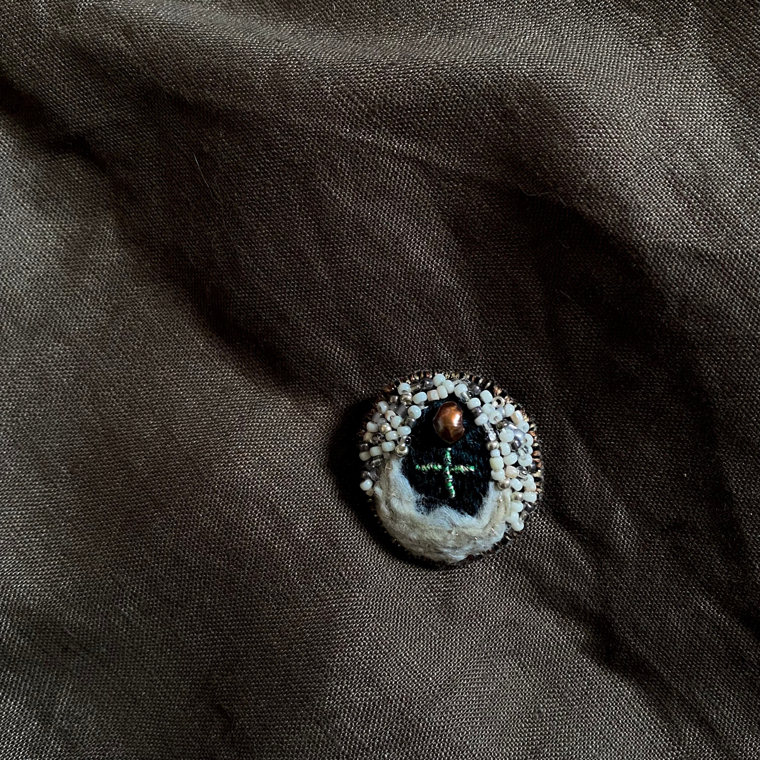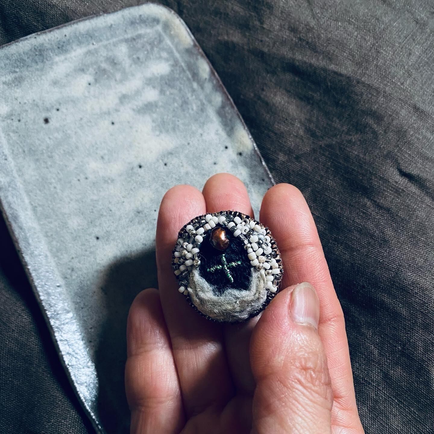 金具は、インドのミラー刺繍の技法でとりつけています。