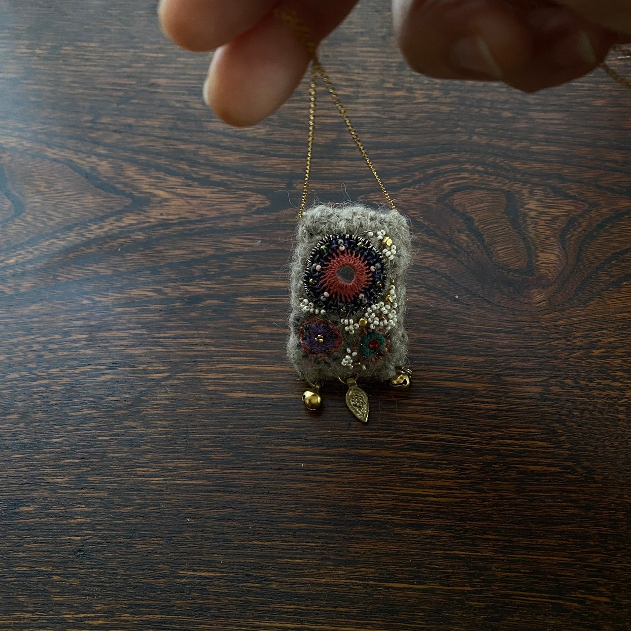 ウール、アルパカ、ミラー、ガラスビーズ、ブラスビーズ、刺繍糸、真鍮金具