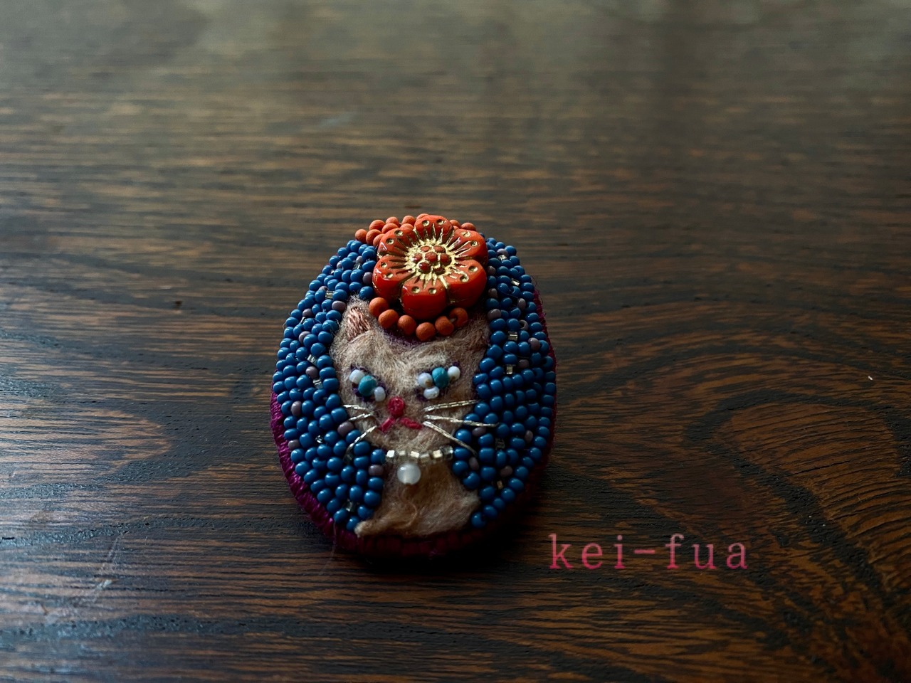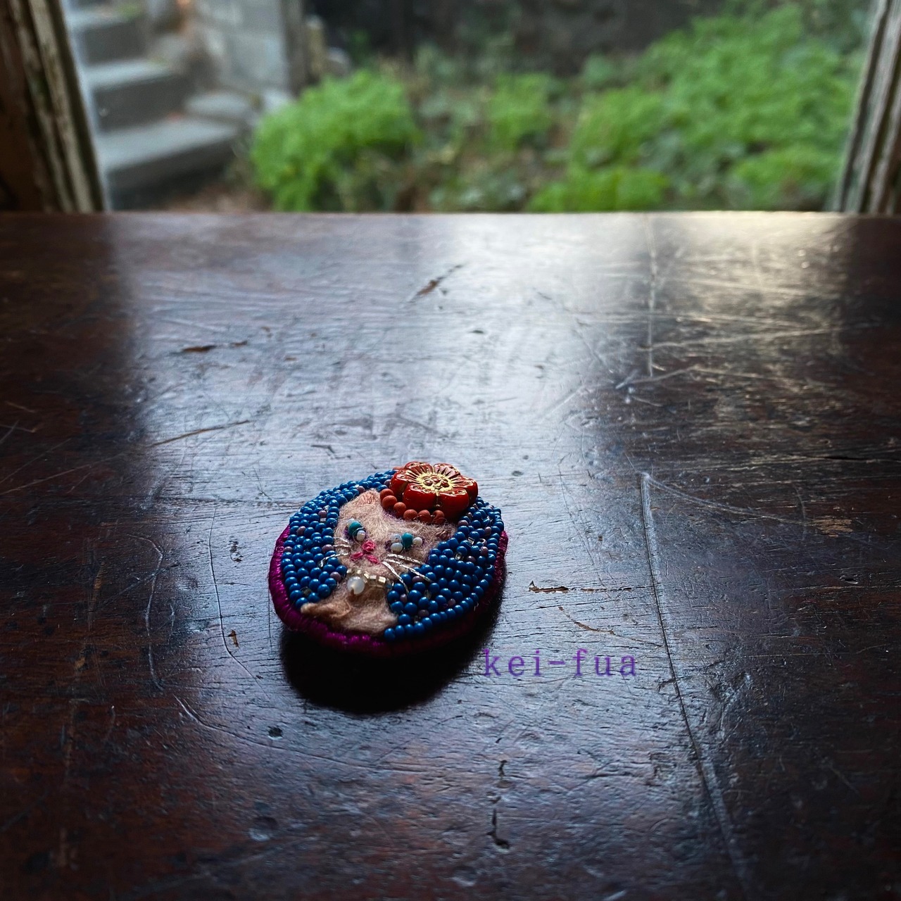 フェルトに、チェコのビーズ、フランスのアンティークビーズをたっぷりと刺しました。