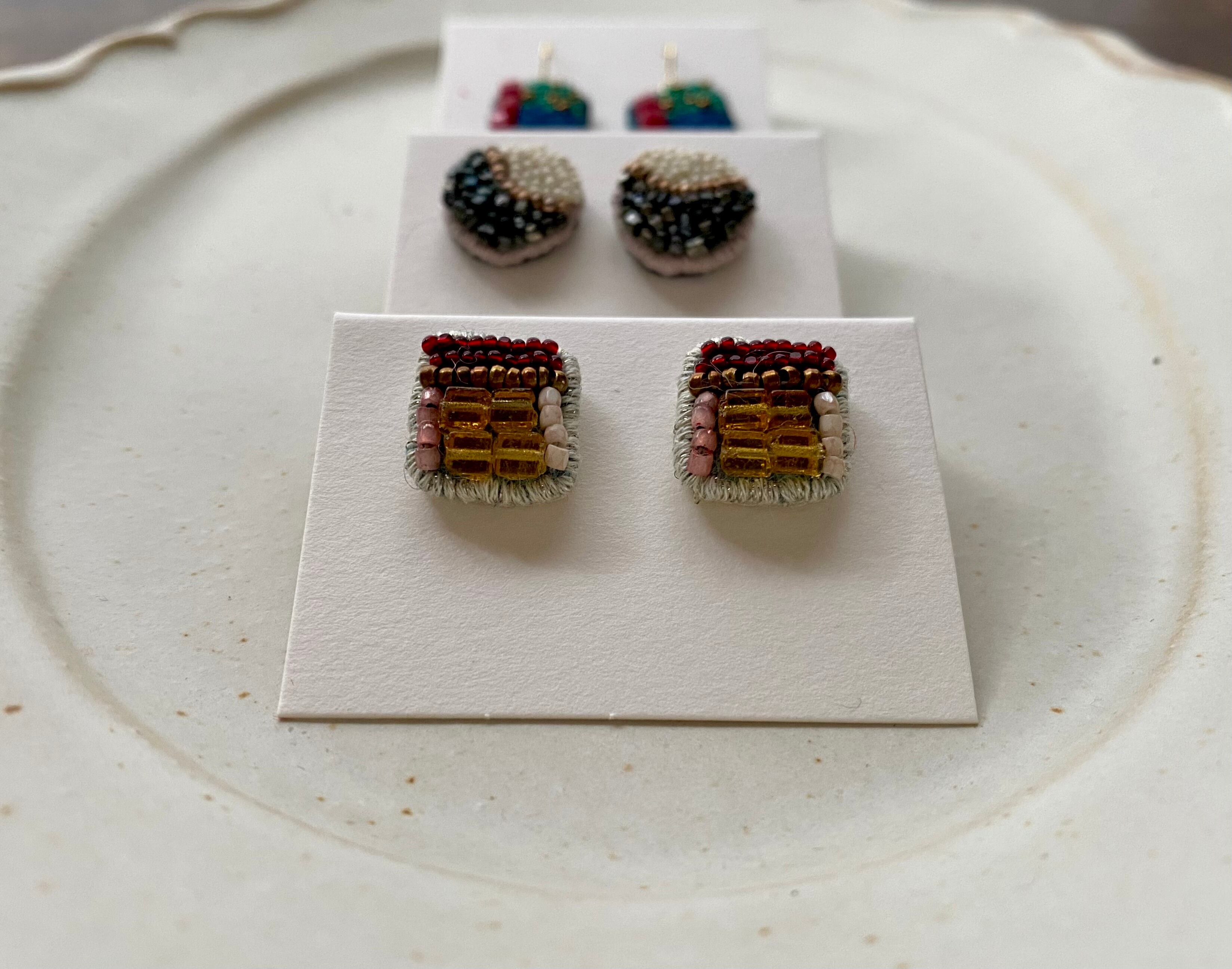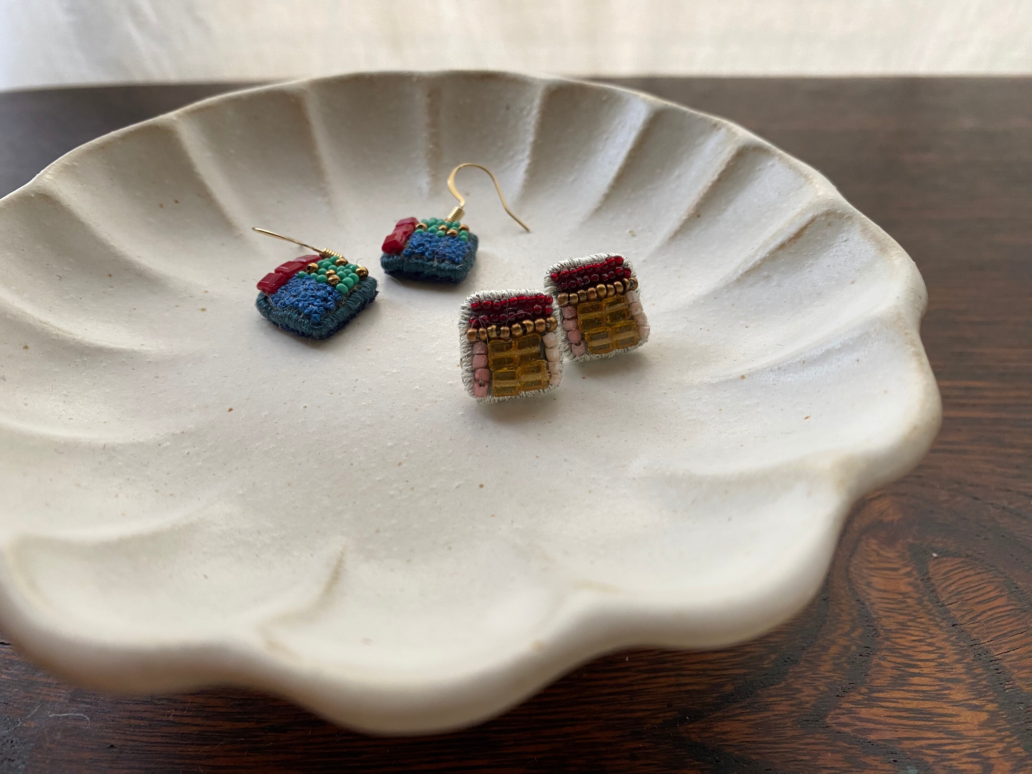 べっこう飴みたいな四角いアンティークビーズが美しい。子供の頃の甘い記憶のような、大人のためのアクセサリー。